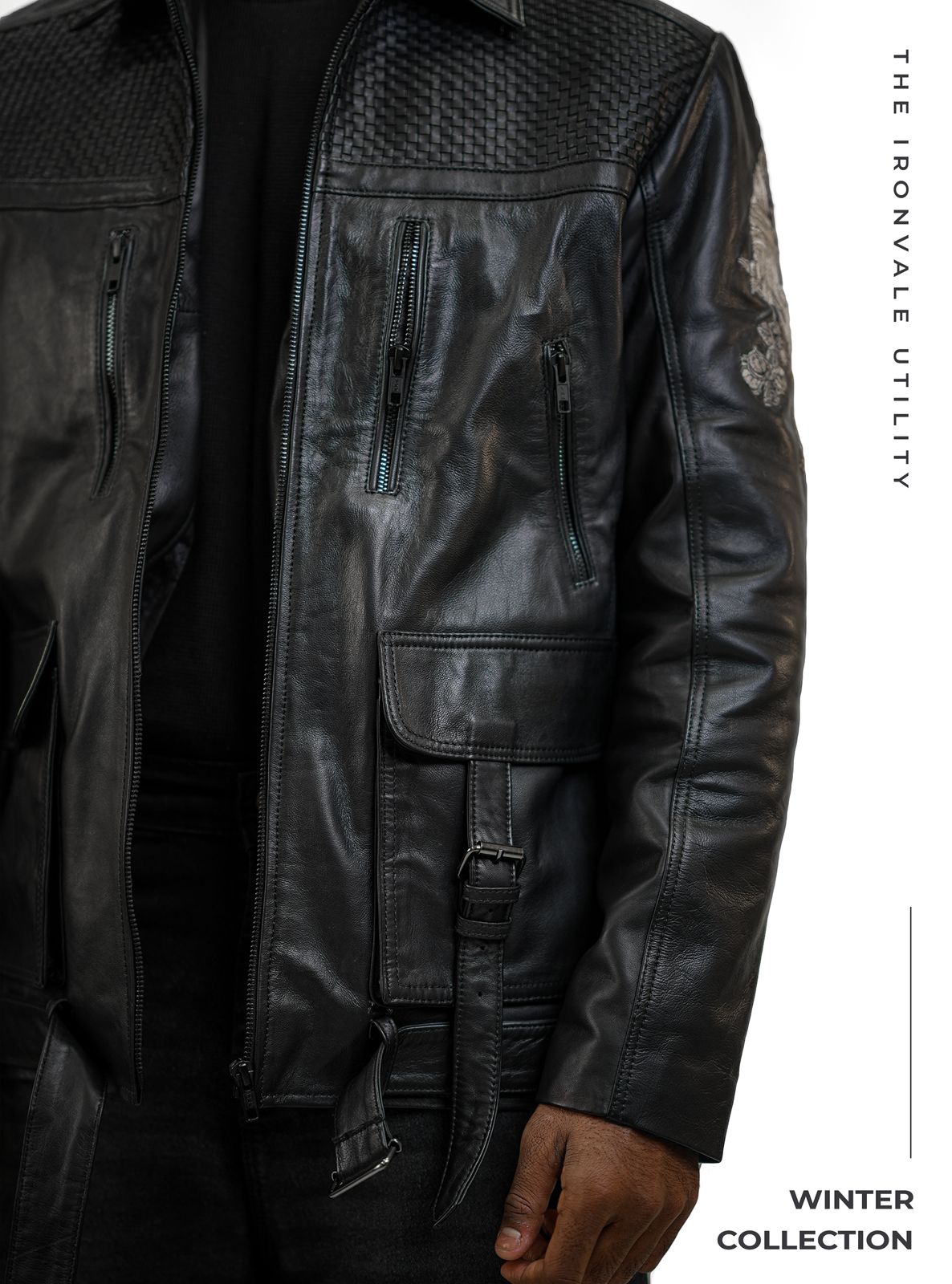 Structured tailoring meets hand-woven leather in a piece defined by quiet refinement. Clean lines and intricate detailing come together to create a jacket that feels both contemporary and timeless, crafted to elevate everyday wear with understated elegance.