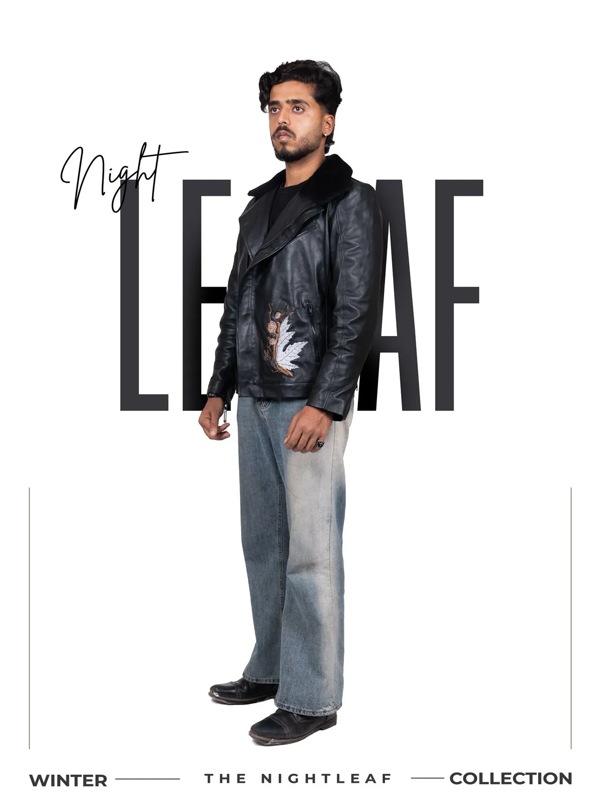 Structured tailoring and hand-woven leather craftsmanship define this premium leather jacket, offering refined elegance and timeless appeal.