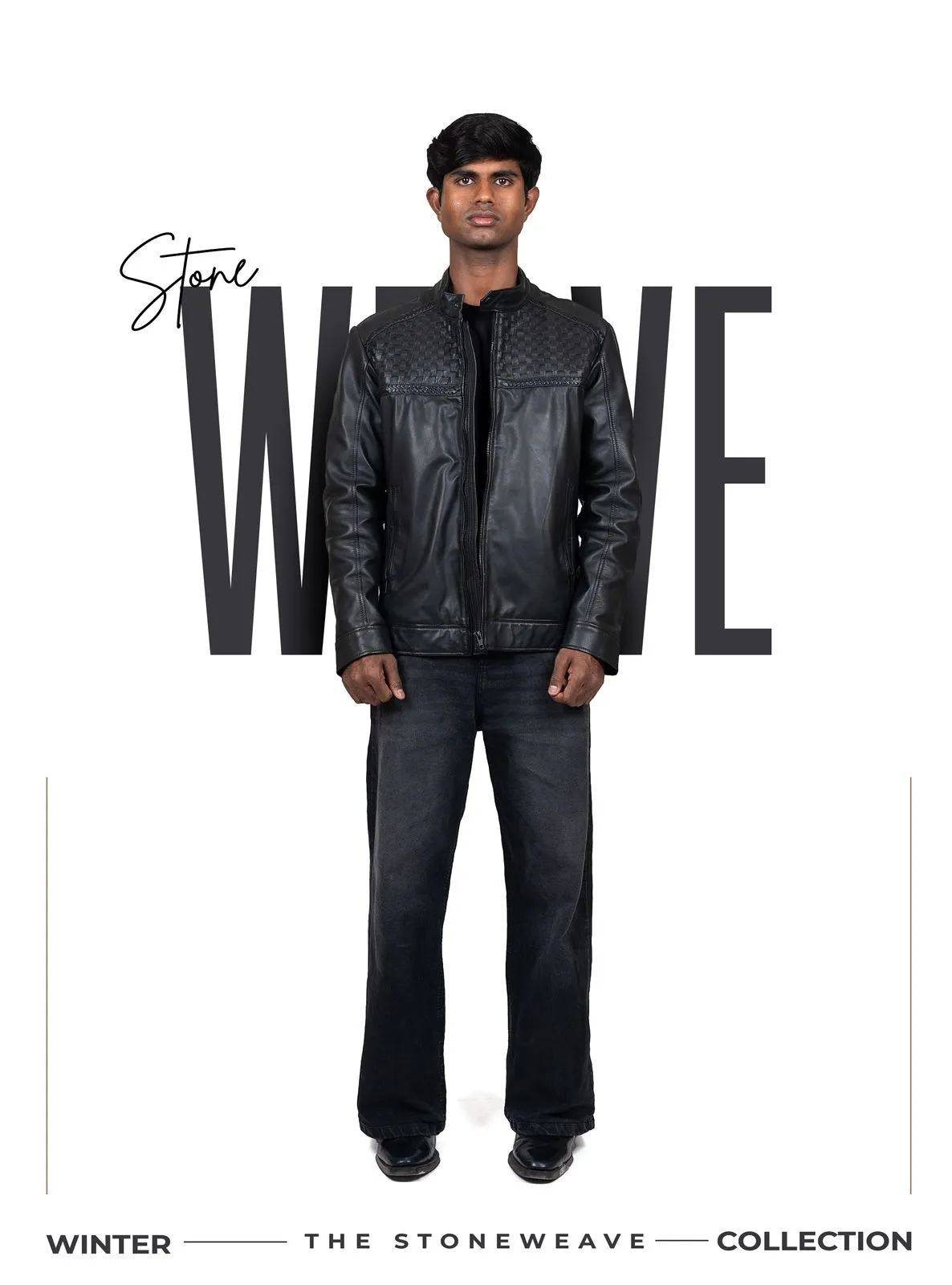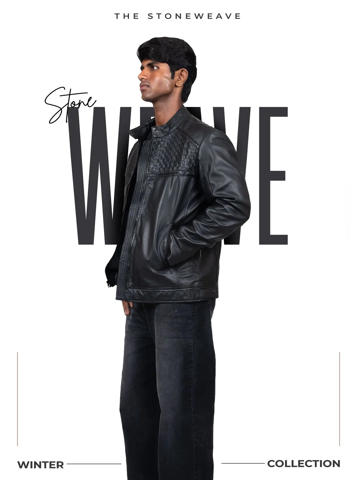 Structured tailoring meets hand-woven leather in a piece defined by quiet refinement. Clean lines and intricate detailing come together to create a jacket that feels both contemporary and timeless, crafted to elevate everyday wear with understated elegance.